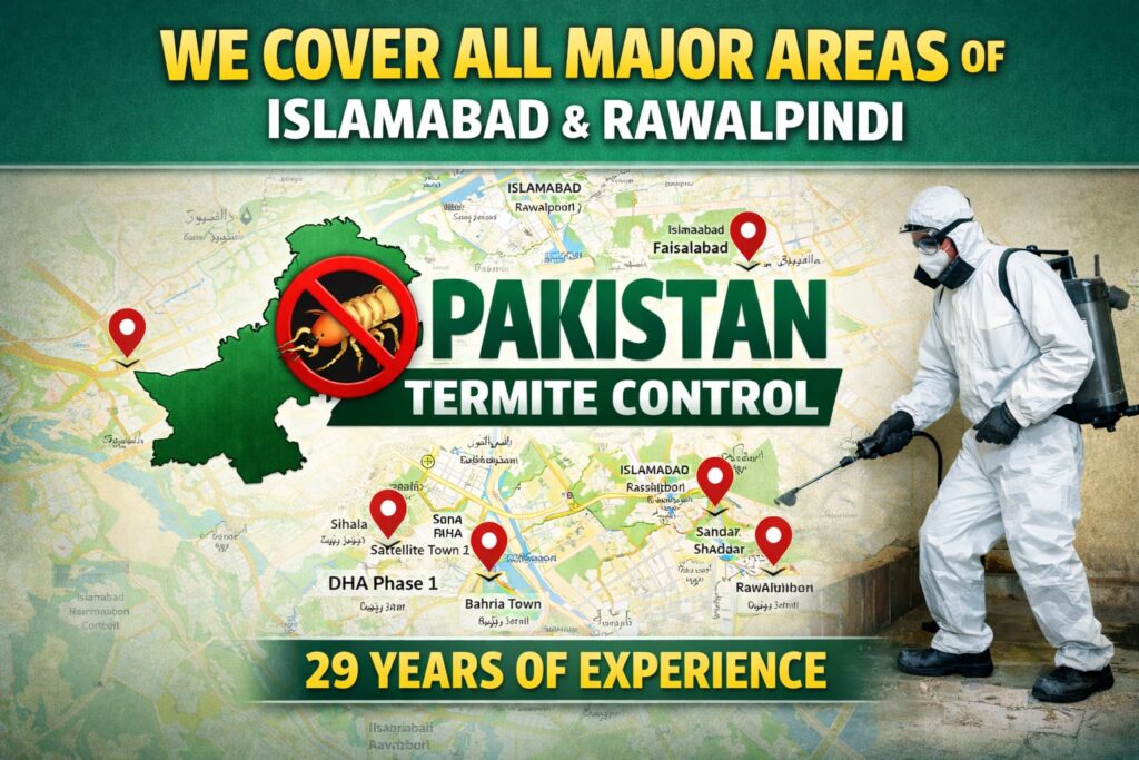 We serve all major areas of Islamabad & Rawalpindi making sure every customer gets our reliable service of Termite control.